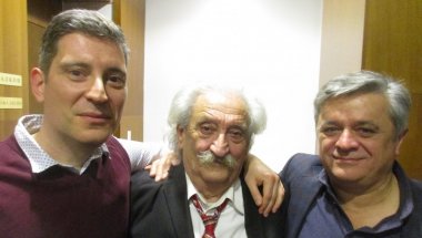 Miloš i Pero Zubac i izdavač Tomislav Karadžić, Foto M Bošnjak