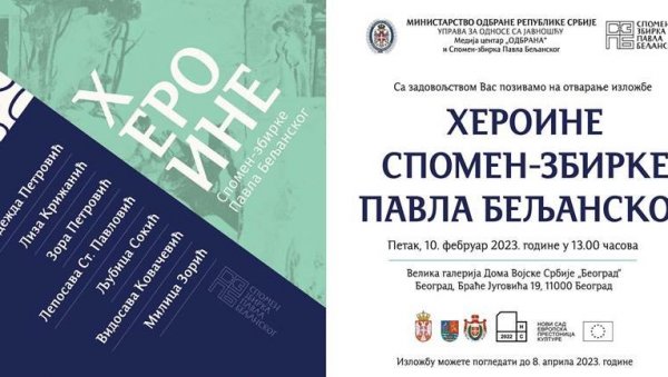 U VELIKOJ galeriji Doma Vojske Srbije u Beogradu 10.februara u 13 sati biće predstavljena izložba „Heroine Spomen zbirke Pavla Beljanskog“ koja je redak primer legata u međunarodnim okvirima u kojem četvrtinu od ukupnog broja dela čini žensko stvaralaštvo.