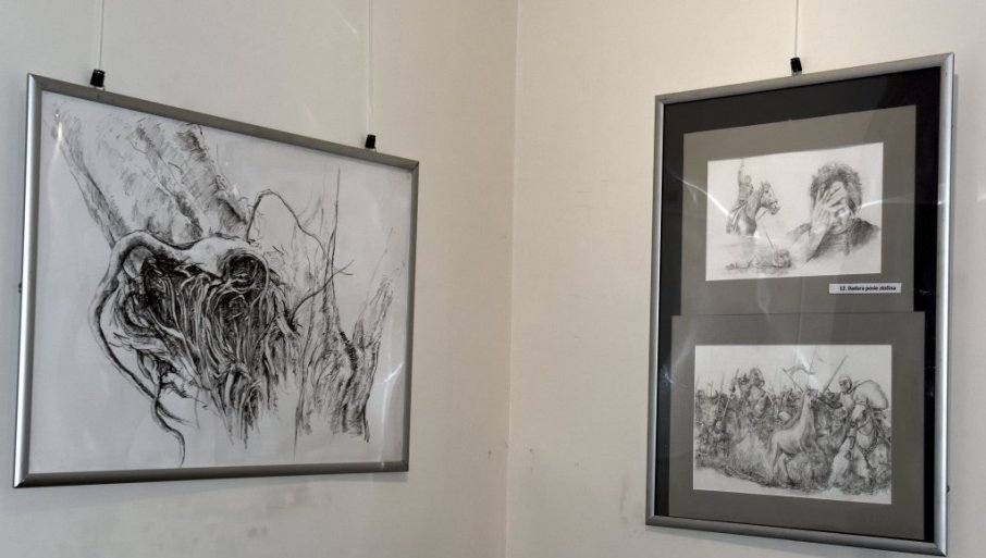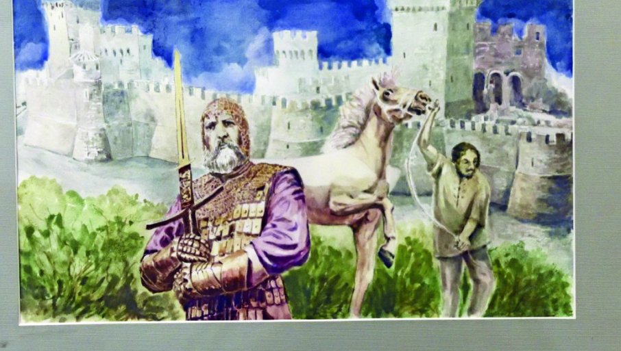 Među prizorima iz romana su i srednjovekovne borbe različitih vojski i plemena. Na jednom od akvarela predstavljen je trenutak kada se saznaje da Dorotej dolazi iz manastira Sveti Ahilej.