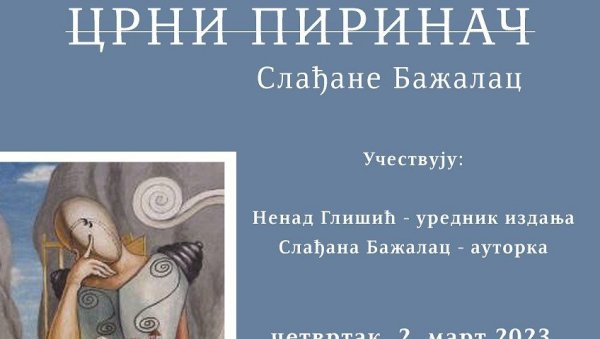 U ORGANIZACIJI Kulturnog centra „Ribnica“ u Svečanoj sali kraljevačke Gradske uprave u četvrtak će biti održana promocija knjige „Crni pirinač“, autorke Slađane Bažalac.