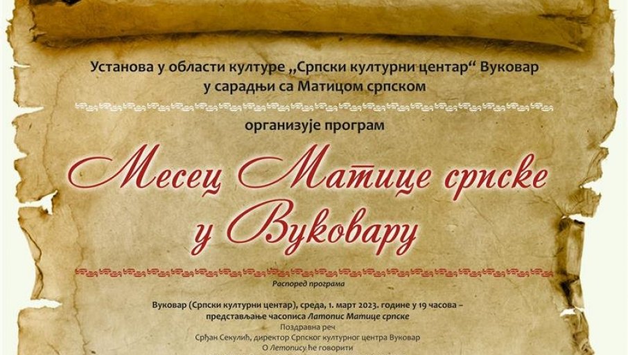 MESEC LETOPISA, CRNJANSKOG I HANDKEA: U Vukovaru počinje manifestacija posvećena Matici srpskoj