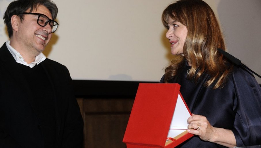 Pantelić je kazao da je "veliko zadovoljstvo kada imate priliku da uručite priznanje nekom ko je na takav način obeležio svetsku kinematografiju kao što je to slučaj sa Nastasjom Kinski".