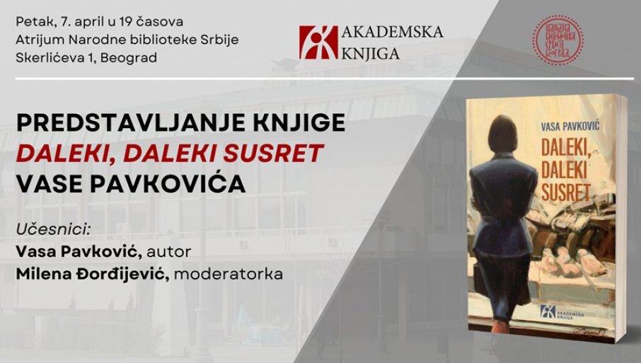 KNjIGA pesnika, prozaista i književnog kritičara Vase Pavkovića "Daleki, daleki susret" biće predstavljena u petak 7. aprila od 19 časova u Atrijumu Narodne Biblioteke Srbije, uz učešće autora i Milene Đorđijević, moderatorke.