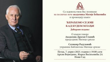 POKLONICI poezije Matije Bećkovića imaće priliku da večeras od 19 sati u Arhivu Vojvodine u Novom Sadu (Ulica Žarka Vasiljevića 2 a) prisustvuju pesničkoj večeri i promociji knjige pesama „Ćeraćemo se još kad budem mlađi“ u izdanju Arhiva Vojvodine (Novi Sad : Sajnos)i Književne zajednice Šid.