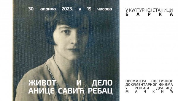 PREMIJERNA projekcija poetsko - dokumentarnog filma u režiji Dragice Mačkić „Život i delo Anice Savić Rebac“ biće upriličena 30. aprila (19.00)u Kulturnoj stanici Barka U Novom Sadu.