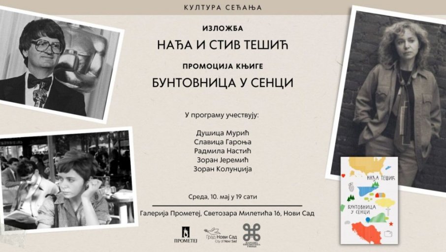 VEČE posvećeno životu i delu književnice Nađe Tešić (Užice,1939 - Njujork,2014) i njenog brata scenariste i pisca Stiva Tešića (Užice,1942 - Sidnej,1995) biće priređeno u sredu,10.maja u novosadskoj Galeriji Izdavačke kuće „Prometej“ (Svetozara Miletića 16, u 19 sati). Dokumentarna postavka trajaće do kraja maja.