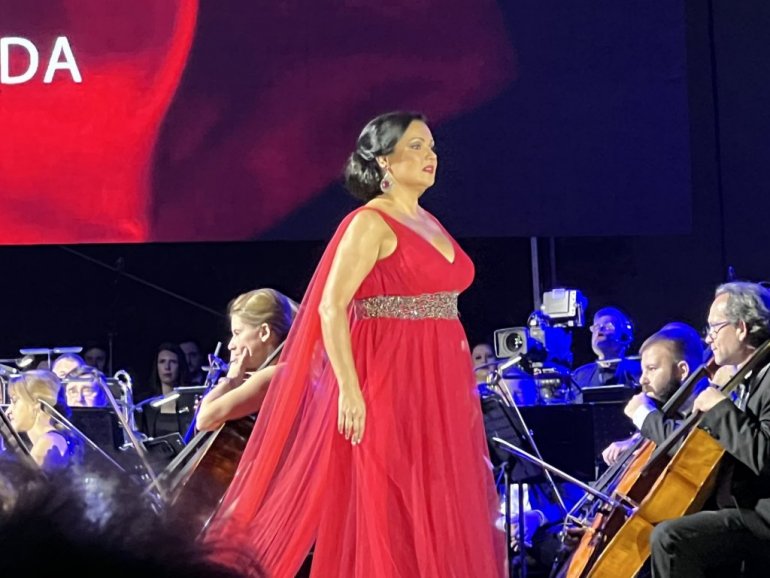 Prolomio se taj blistavi glas, i skupa sa Jusifovim tenorom i moćnim baritonom Željka Lučića, pojačanim glasovima Hora RTS, već u prvoj, života punoj ariji "Libiamo ne'lieti calici" iz "Travijate", pozvao publiku da "popiju iz vrča sreće". Magija, namah stvorena, dotakla je srca svih prisutnih, koji su do poslednjeg mesta ispunili jedinstvenu "dvoranu pod zvezdama", na platou iza zdanja "Geozavoda", već s tim prvim notama Đuzepea Verdija.