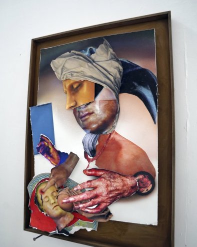 - Sve smo rešavali na licu mesta, s obzirom na to da je postojala štampa na plišu, pleksiglasu, foreksima... To je sada jedan novi kolaž, iz serije koju sam započeo da radim u Britaniji, a nosi naziv Am I AI? ("Jesam li ja veštačka inteligencija?"). Tema radova je veštačka inteligencija, koja je novi izazov za mnoge umetnike, sa pitanjima koliko je moralna. Za mene, koji se bavim kolažiranjem i aproprijacijom radova starih majstora, veštačka inteligencija je nešto što mogu da koristim kao alatku, kao unapređeni fotošop.