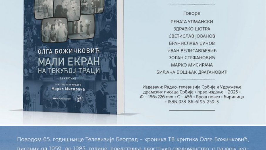 POVODOM 65 godina Televizije Beograd izašla je knjiga "Olga Božičković: Mali ekran na tekućoj traci" koju je priredio Marko Misirača,u izdanju RTS Izdavaštva i Udruženja dramskih pisaca Srbije,a biće predstavljena u četvrtak, 30.novembra, u zgradi Radio Beograda.