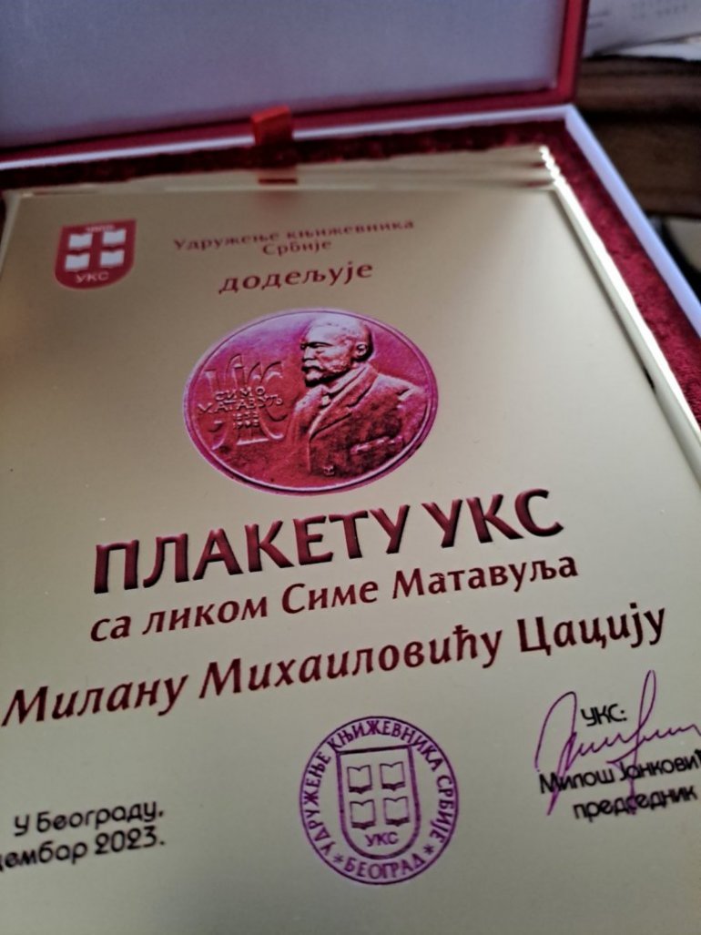 GLUMAC Milan Caci Mihailović dobitnik je godišnje nagrade "Simo Matavulj" koju dodeljuje Udruženje književnika Srbije.