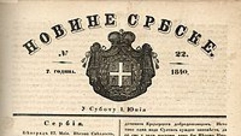 PRE 190 godina, baš na današnji dan, izašao je prvi broj "Novina srbskih". Bile su to prve novine u Kneževini Srbiji.