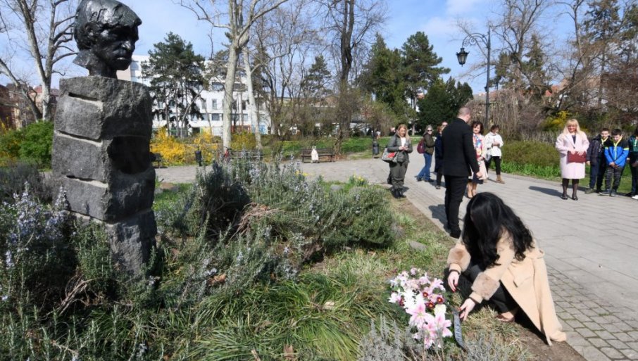 Ispred pesnikove biste u novosadskom Dunavskom parku, cveće je položila predsednica Skupštine Grada Novog Sada Jelena Marinković Radomirović.