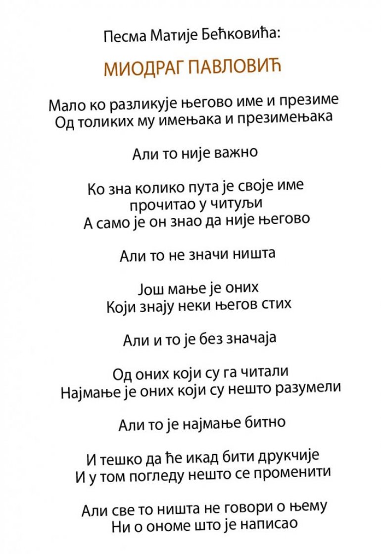 ZAŠTITNI ZNAK NOVOG SRPSKOG PESNIŠTVA: Deset godina od odlaska velikog pesnika, esejiste i antologičara, akademika Miodraga Pavlovića