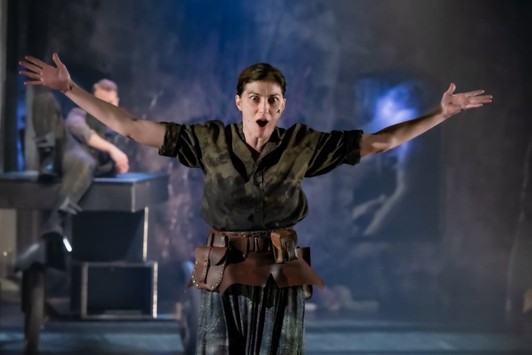 Koreografske numere i obavezni songovi (po sebi odlični), koji daju aktuelnost najpoznatijem antiratnom komadu u svetskoj dramaturgiji su izgubili primat pred slikama današnjih patnji nedužnih u ratnim sukobima. Reditelj je pomerio težište naracije epskog teatra sa Majke Hrabrost na njenu decu (Daniel Tot, Čaba Bence Kemiveš i Dina Dedović Tomić, izvrsni) stradalnike ratnih okolnosti, ali i načina života kojim ih majka (zlo)upotrebljava u mutnim profiterskim poslovima. "Rat jede svoju decu" je rečenica Majke Hrabrost (nadimak joj je ostao iz uspešne pljačke u nekom okršaju, bez korespondencije sa majčinskom žrtvom), kada izgubi sve troje i tako postane prethodnica svih stradalih majki i dece, do danas. Emina Elor je sa velikim umećem provela svoju (anti)heroinu kroz veliki registar transformacija, od radosti, ljubavi, nade, do duboke tuge, što nije primereno Brehtovom cilju, da događaj na sceni bude samo okidač za akciju, pobuđenu u gledaocu. Ipak, magija, uvek prisutna u igri ansambla Novosadskog pozorišta je, u viziji Dejana Projkovskog (scenograf Valentin Svetozarev, kostimograf Ivana Ristić, muzički pasaži Goran Trajkovski i Zoran Bale Bulatović), satkala originalni scenski protest protiv rata i stradanja nedužnih u njemu. Posle grandioznih poduhvata sa ovim ansamblom, "Ane Karenjine" i "Ričarda Trećeg", Projkovski se u "Majci Hrabrost i njenoj deci" okrenuo intimnijoj, tragičnijoj priči o tragediji dece u ratnom vihoru, svesno rizikujući da izađe iz okvira zadatog Brehtovog nedramskog angažmana.