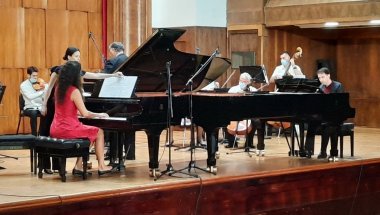 Uz Ansambl „Binički” nastupili su mladi, ali već afirmisani pijanisti i kamerni muzičari Dušan Toroman, klavir, Marija Kovač, flauta i Milena Maleš, klavir. Ansamblom je dirigovao maestro Pavle Medaković, autor projekta je profesorka Zlata Maleš, a cifra 335 u nazivu koncerta označava broj godina od rođenja Johana Sebastijana Baha.
