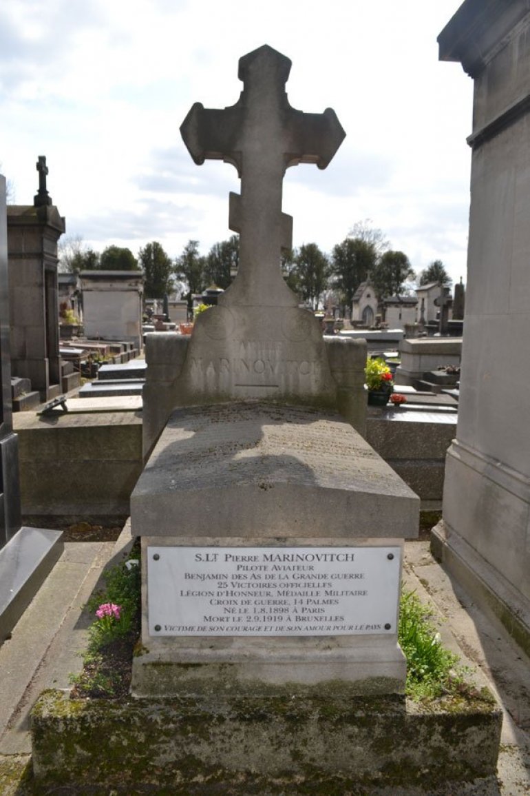 NA Per Lašezu je sahranjen i Petar Pjer Marinović, najmlađi as francuske avijacije i, kažu, najbolji srpski pilot u prvoj polovini 20. veka. Bio je praunuk kapetana Miše Anastasijevića. Rođen je u Parizu, a odgajan u srpskom duhu.
