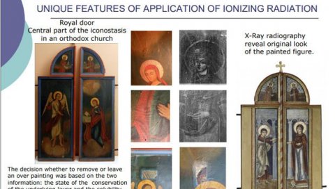 - Radiografija je pokazala da se ispod onoga što se sad vidi kao naslikana ikona na tim drvenim vratima, krije originalni izgled tog umetničkog dela. Tada je nakon primene radiografije, pokušano da se na neki način pokaže šta je to što je ispod. Odluka da li će da se skine taj površinski sloj ili će da se sačuva ovaj danas vidljiv, doneta je na osnovu toga što se pokazalo da je moguće ukloniti taj preslikani sloj i da se na neki način otkrije ili izloži danas javnosti originalni izgled vrata - naveo je stručnjak iz "Vinče".