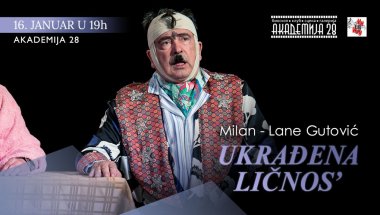 NA sceni Akademije 28 prva predstava u novoj godini biće monodrama Milana Laneta Gutovića “Ukradena ličnost” : na repertoaru je 16. januara, a njen glavni junak se sa "spretnošću i duhom seoske bitange , potura po Evropskoj Uniji kao kandidat za predsednika.