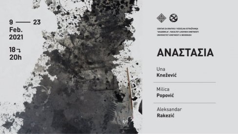 CENTAR za grafiku Fakulteta likovnih umetnosti udomio je zajednički projekat Une Knežević, Milice Popović, Aleksandra Rakezića, izložbu "Anastazija" koja će moći da se obiđe do 20. februara.