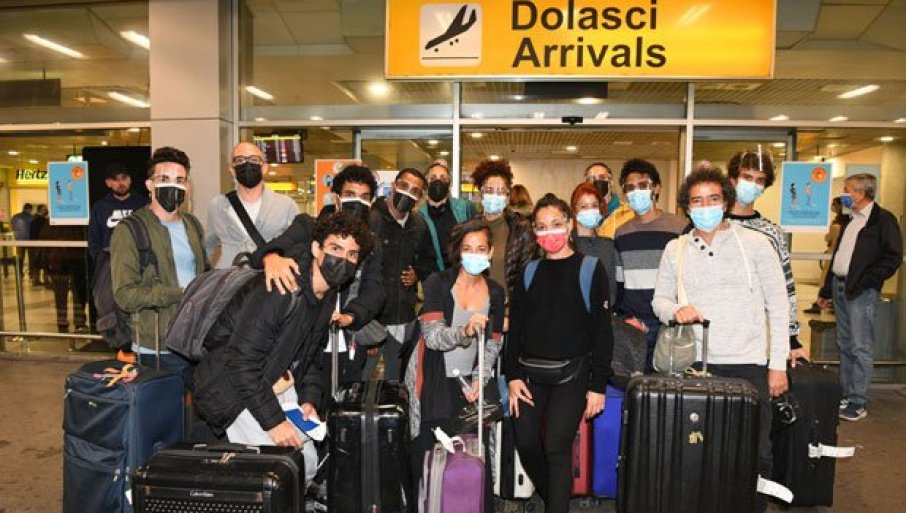 Ukupno vrhunskih 14 igrača je u petak, samo nekoliko minuta pre ponoći, najzad sletelo na beogradski aerodrom, gde je dobrodošlicu članovima trupe poželela direktorka festivala Aja Jung.