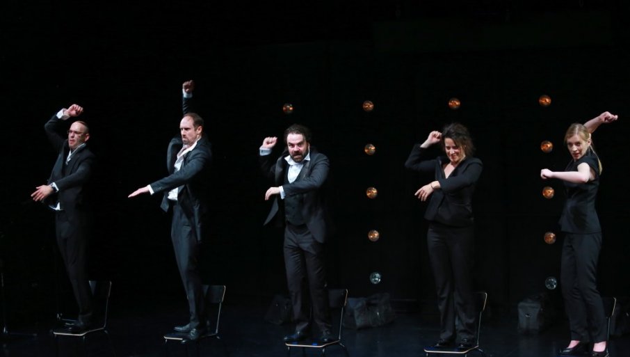 Duhovito, gorko, groteskno, savremeno (i svevremeno) - bila su akterima puna usta demokratije, prinuđenim da je „uteruju“ u sistem i živote svojih sunarodnika. Na momente, nedostajalo je samo ono „narode moj“ da u maestranom Grabariću prepoznamo Radmilovićevog „Ibija“, iako je hrvatski glumac rođen gotovo dve decenije posle beogradske premijere kultne predstave Ateljea 212...