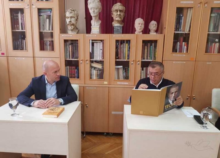 - Uz sve što Gradska biblioteka, kao služba koja radi u korist lokalne zajednice utičući na oblikovanje njenog kulturnog identiteta, naša ustanova je i organizator manifestacije „Dani biblioteka Republike Srbije i Republike Srpske“ - istakao je Kojić.- Takođe, imamo dva zbornika posvećena pitanjima zaštite i očuvanja nacionalnog identiteta našeg naroda, a bavili smo se i velikanima Teslom i Pupinom. Sve to nas povezuje sa našim gostom koji pored toga što obavlja funkciju upravnika Narodne biblioteke, važi za jednog od najčitanijih i najprevođenijih pisaca naše savremene kulturne scene .