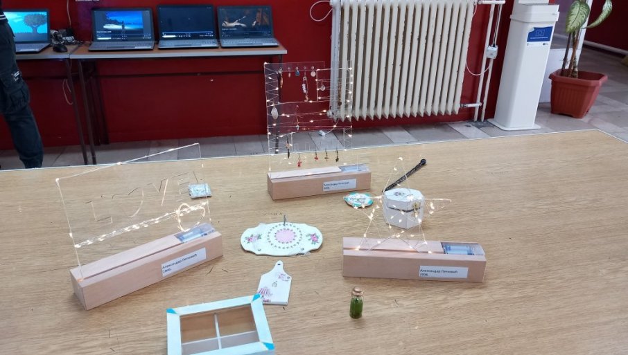 Među autorima se našla Vanja Pejčić, koja je izložila ručno pravljene ukrasne kutijice i predmeti od drveta i minđuše, štapići za kosu. Kao koordinator izložbe Marta Mrvoš nam otkrva da se mogu naručiti i personalizovani ukrasni komadi. Unikatne lampe Aleksandra Petkovića,  izazvale su veliku pažnju i na nedavnom takmičenju učeničkih kompanija u organizaciji "Dostignuća mladih".