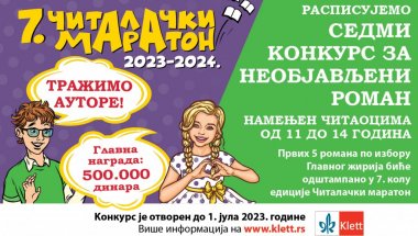I OVE godine, sedmi put zaredom, Izdavačka kuća Klett raspisala je konkurs za neobjavljeni roman za mlade čitaoce od 11 do 14 godina u okviru društveno-odgovorne akcije Čitalački maraton.