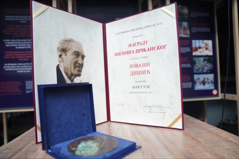 - Ako se svemu tome pridoda i veština da se pažnja čitaoca drži budnom, odnosno da roman bude zanimljiv, onda je jasno zbog čega je žiri u sastavu prof. Milo Lompar (predsednik), prof. Bojana Stojanović Pantović i prof. Slađana Jaćimović odlučio da Nagradu „Miloš Crnjanski“ za 2022/23. godinu dodeli upravo romanu „Vakuum”
