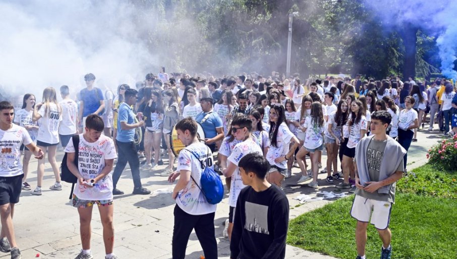 Uz trubače, baklje, cepanje udžbenika, pena parti, skakanje u fontane... đaci osmog razreda širom Srbije završili su osnovno školovanje.