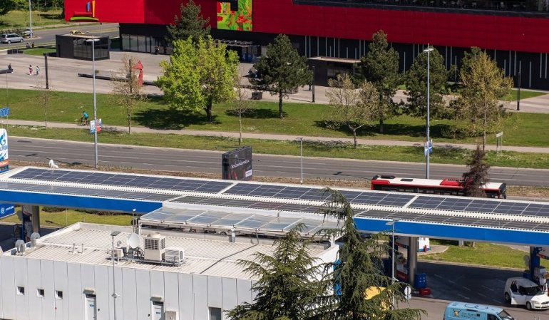 Tako je Kompanija NIS otpočela postavljanje solarnih panela za proizvodnju električne energije na svojim benzinskim stanicama. U okviru prve faze ovog projekta solarni paneli će biti postavljeni na osam NIS Petrol i GAZPROM maloprodajnih objekata širom Srbije.