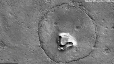 KRUŽNI uzorak na površini oblikuje glavu, dok dva kratera liče na oči. Složena struktura u obliku latiničkog slova „v“ stvara iluziju nosa. Liči na medveda, ali nije na Zemlji.