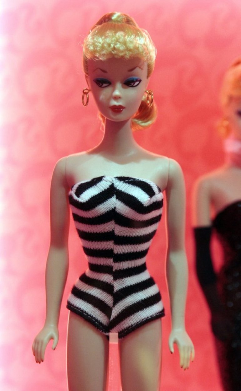 Prva Barbi je vrlo prepoznatljiva - nosi crno-beli kupaći kostim i štikle.