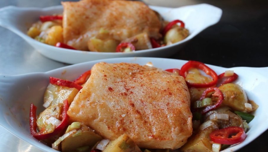 - 2 filea čileanskog brancina (po oko 225 g svaki, ukupno oko 450 g), bez kože i kostiju
