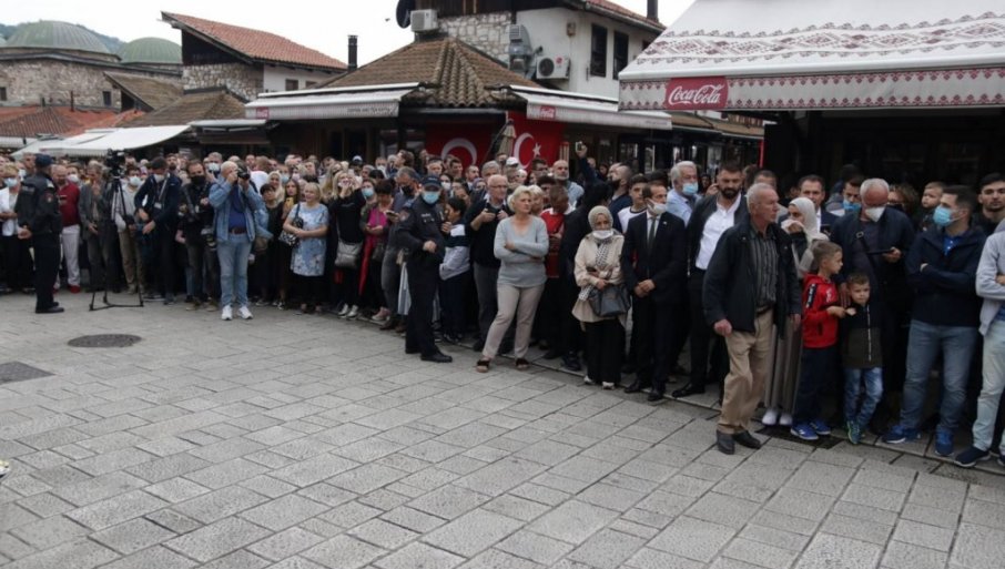 Erdogn je, navodi se, prošetao od groblja na Kovačima, gde je odmah po dolasku u Sarajevo odao poštu Aliji Izetbegoviću, do Baščaršijske džamije, gde će klanjati džumu-namaz.