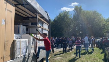 Kamion iz Beograda zaustavio se najpre u Blinji kraj Petrinje, a dočekalo ga je desetak meštana kojima su namenjeni toliko potrebni kućanski aparati.