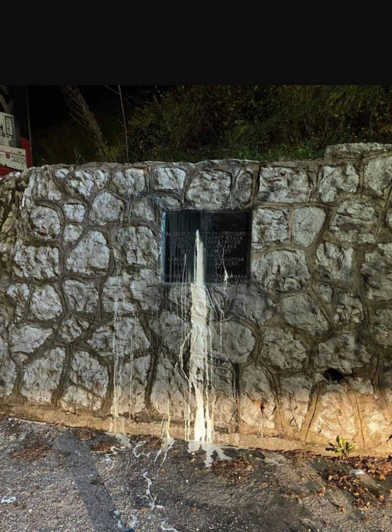 VEČERAS je jedna ili više osoba bacila farbu na spomen-ploču posvećenu srpskom narodu koja se nalazi na Vracama.