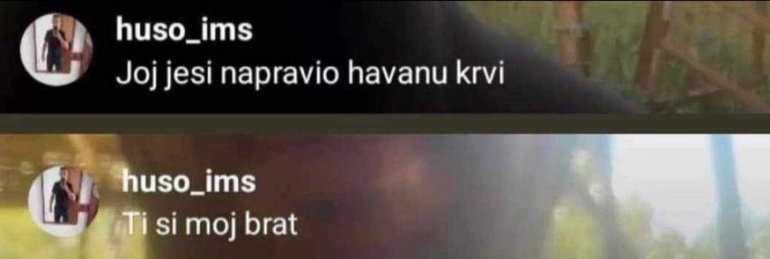 - Joj jesi napravio havanu krvi. Ti si moj brat. Puš*** ki** hejteri - napisao je izvesni huso_ims.