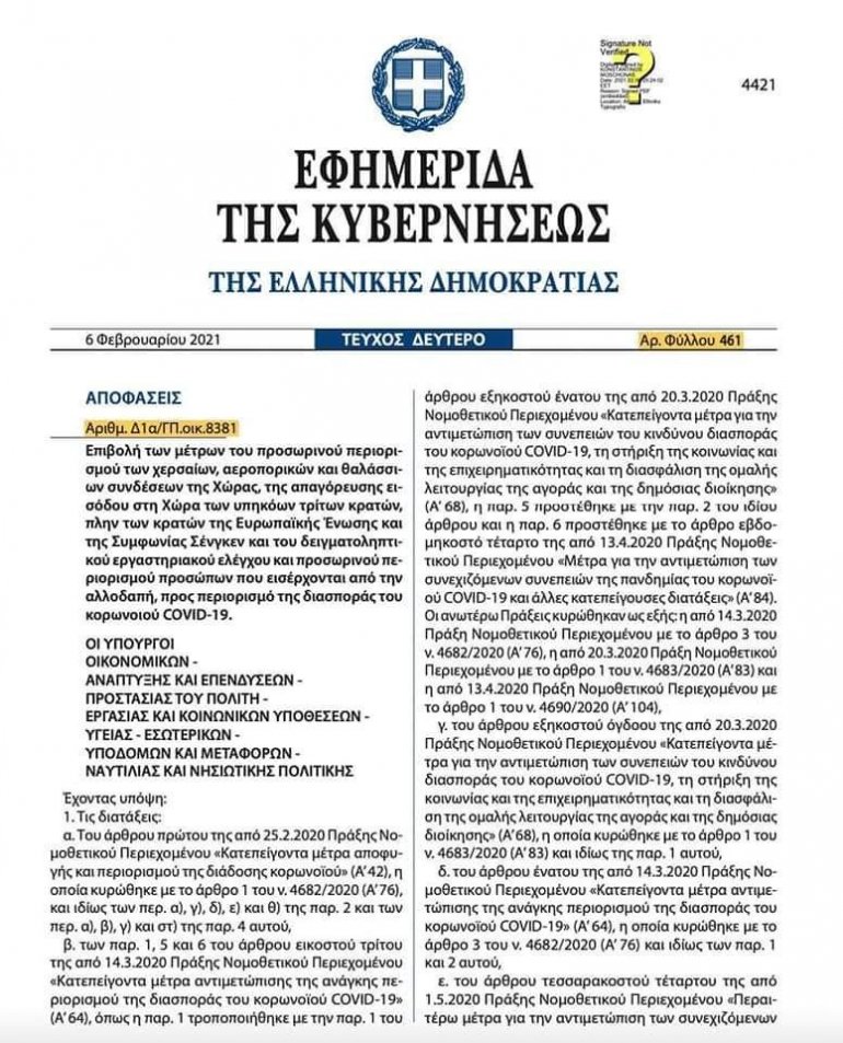PO novoj odluci, sve mere koje važe za ulazak stranih državljana u Grčku se produžavaju do 22.februara 2021.
