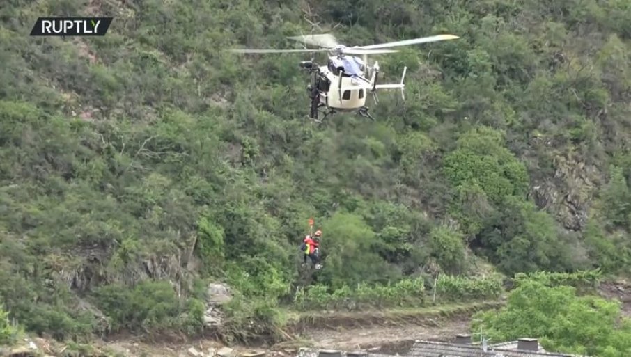 Brojni građani, koji su ostali zarobljeni u svojim kućama, okruženi vodom, spasavaju se iz vazduha - helikopterom.