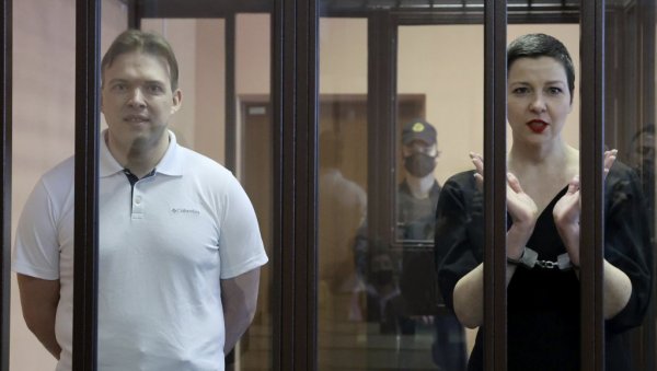 Marija Kolesnikova i Maksim Znak su osuđeni za organizaciju nemira sa ciljem rušenja vlasti Belorusije. Kolesnikova se nalazi u pritvoru od prošlog septembra. Pred zgradom suda u Minsku juče su se okupile njihove pristalice.