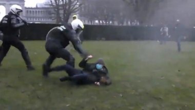 HAOS U BRISELU: Brutalan obračun sa demonstrantima - policija tuče mladića koji leži na zemlji, povređen invalid (VIDEO)