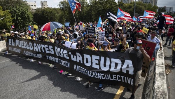 ZATVORENE ulice u prestonici Portorika San Huanu, reski zvižduci pomešani sa bubnjevima i udaranjem kašika po loncima pratili su proteste državnih službenika koji negoduju i zahtevaju bolje plate i penzije.