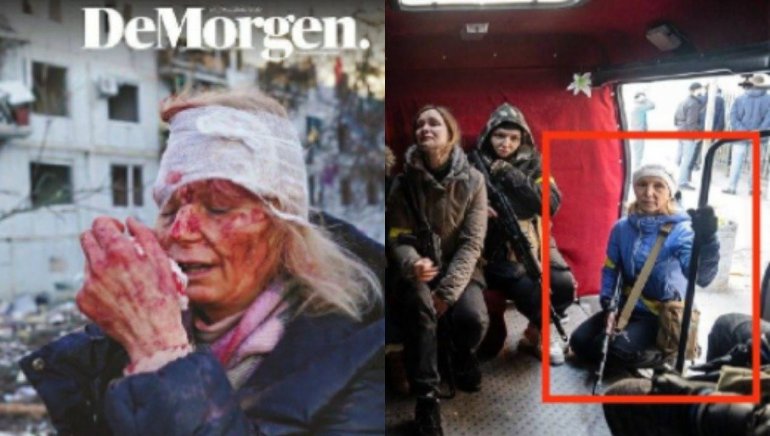 Žena koja je navodno povređena u Ukrajini pozira sa oružjem