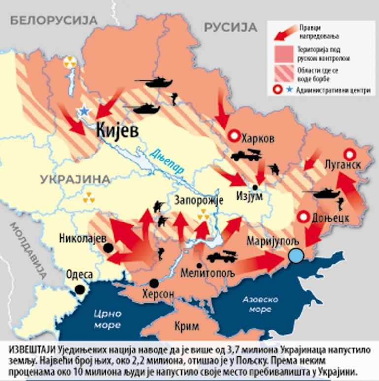 - Za potpuno osvajanje Marijupolja je potrebno još sedam dana, a da se potpuno zatvori Donjecki kotao, treba još dve do tri nedelje, a zatim je potrebno za osvajanje Nikolajeva i Odese minimalno još dve nedelje - kaže Prilepin, koji je sada potpredsednik ruske parlamentarne partije Pravedna Rusija - Za pravdu. Prilepin objašnjava da ruska vojska neće napadati Kijev i Harkov, već će ih držati u obruču. Neće im se davati mogućnost da dobijaju municiju i gorivo za tenkove i mehanizovane jedinice.