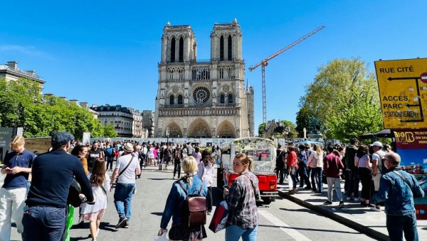 Crkvu svih ovih godina, i dalje, obilaze hodočasnici, turisti, obožavaoci i znatiželjnici iz celog sveta. Tako je to bilo i na katolički Veliki petak pred protekli vikend, što se igrom slučaja poklopilo sa trogodišnjicom izbijanja požara, ili juče, za ovdašnji Uskrs. Crkvu i radove koji se unutra izvode je, povodom godišnjice stradanja, posetio i aktuelni predsednik Francuske Emanuel Makron, koji se nalazi usred predizborne trke za drugi krug izbora sa Marin Le Pen.