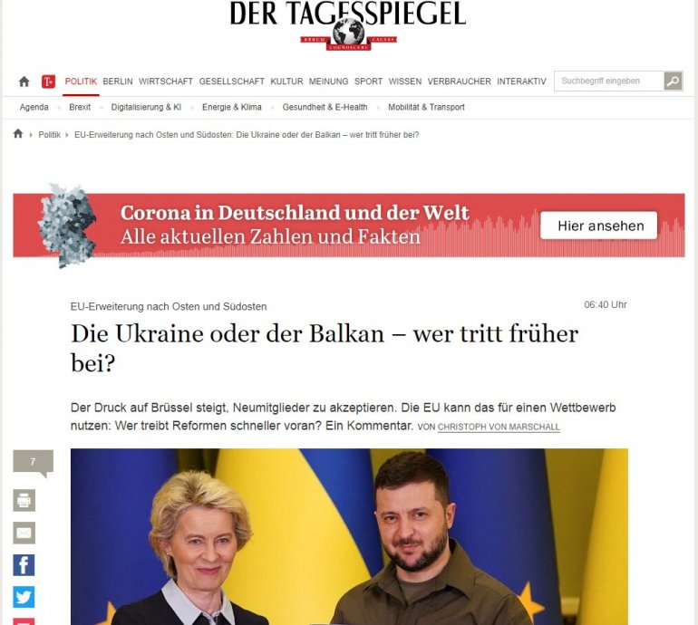 Prema rečima autora članka, bilo bi pogrešno pustiti Ukrajinu da napreduje ka statusu članstva, dok zemlje kandidati moraju da inicijativu preuzimaju same. Ne radi se samo o unutrašnjim političkim reformama, već i o preorijentaciji sistema vrednosti i geopolitičkog kursa.