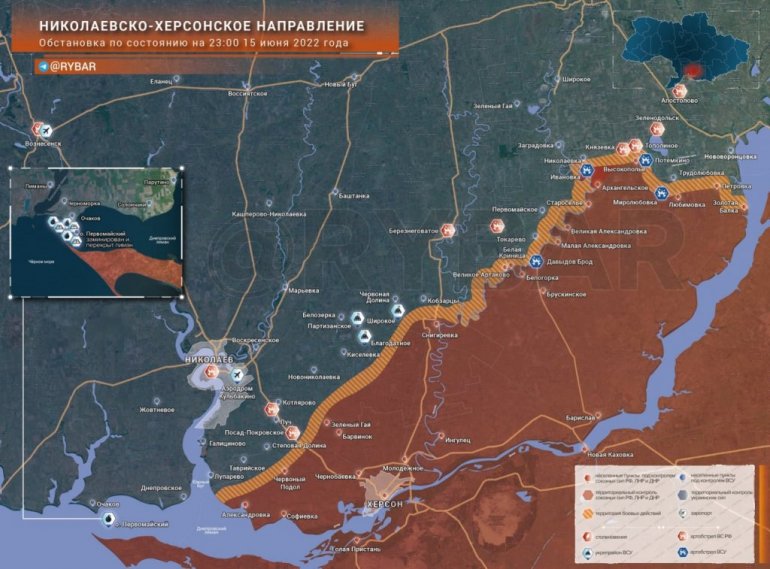 *Nastavljaju se redovni artiljerijski dueli u pravcu Krivog Roga. Oružane snage Ukrajine napale su ruske položaje u Ivanovki, Potemkinu i Miroljubovki. Oružane snage RF su zauzvrat pogodile lokacije ukrajinskih formacija u Zelenodolsku, Apostolovu i Topolinu.