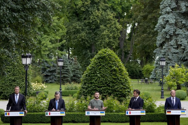 Makron je to rekao na konferenciji za novinare nakon sastanka sa predsednikom Ukrajine Vladimirom Zelenskim u Kijevu, koju je držao zajedno sa nemačkim kancelarom Olafom Šolcom, italijanskim premijerom Mariom Dragijem i predsednikom Rumunije Klausom Johanisom, preneo je Rojters.