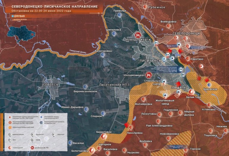 *Dolazi do intenzivnog granatiranja položaja Oružanih snaga Ukrajine u pojedinim oblastima Severodonjecka i Lisičanska. Preostale jedinice Oružanih snaga Ukrajine pokušavaju da napuste Severodonjeck, samostalno forsirajući reku Severski Donjec.